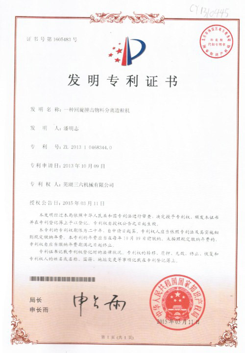 發(fā)明專利證書